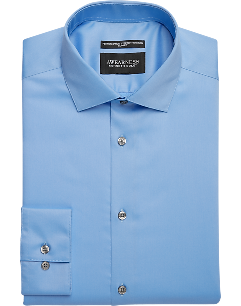 Tailored from a comfortable cotton blend with a bit of stretch, this dress shirt from Awearness Kenneth Cole is made to perform. Comfortable and in a slim fit, this dress shirt has a spread collar and smooth, no pocket front. Choose from a variety of solid colors to rotate throughout your work week. Slim Fit is slim and tapered across the chest, shoulders, armholes, waist and sleeves without compromising on comfort. Recommended for more triangle body types (broad shoulder and chest, narrow waist and hips).