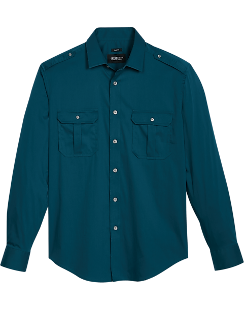 Introduce this military-style shirt to your collection of sport shirts and you’ll have something new for your casual evenings and weekends. The cotton-blend fabrication means you’ll stay comfortable all day long.
