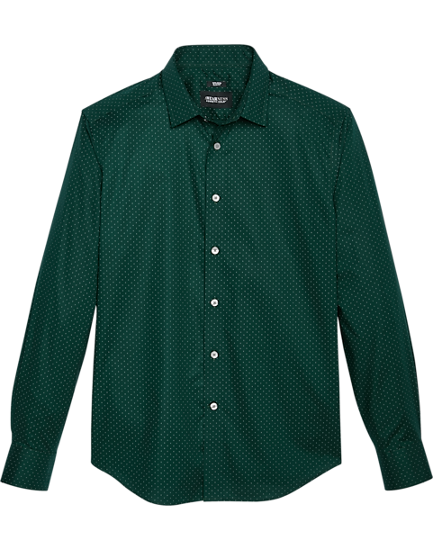 Look your best in this rich, dark green shirt by Awearness Kenneth Cole featuring a dot pattern, spread collar, and trim, Slim Fit