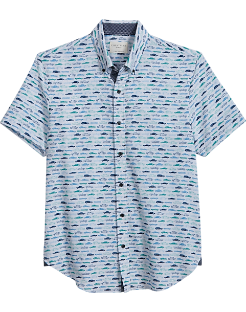 Keep your cool in the heat with this short-sleeve sport shirt from Con.Struct. Made with a breathable poly blend, button-down collar, and sleek Slim Fit, you can pair it with shorts, jeans, khakis, and other laid-back slacks for dressed-down perfection.