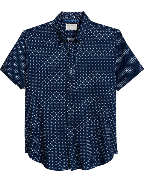 Keep your cool in the heat with this short-sleeve sport shirt from Con.Struct. Made with a breathable poly blend, button-down collar, and sleek Slim Fit, you can pair it with shorts, jeans, khakis, and other laid-back slacks for dressed-down perfection.