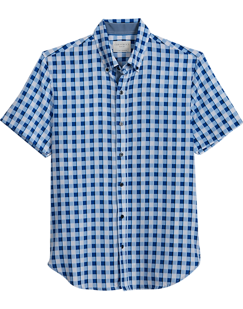 Keep your cool in the heat with this short-sleeve sport shirt from Con.Struct. Made with a breathable poly blend, button-down collar, and sleek Slim Fit, you can pair it with shorts, jeans, khakis, and other laid-back slacks for dressed-down perfection.