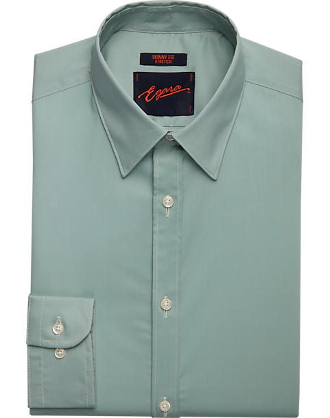 This dress shirt by Egara offers a more modern approach to dressing. The cotton-blend fabric has a hint of stretch for comfort, while a non-iron finish keeps wrinkles to a minimum. Skinny Fit is our slimmest fit. It is slimmer through the chest, shoulders, sleeves and waist. Recommended for more slender body types (average shoulder and chest, but narrow waist and hips).