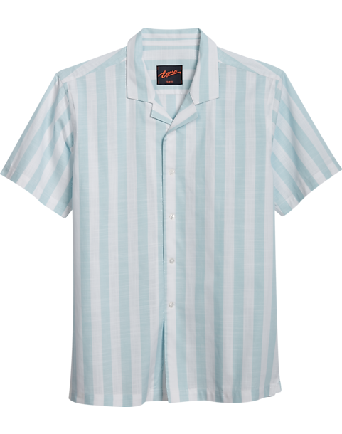 This short-sleeved sport shirt by Egara features wide awning stripes in an aquatic hue. Cut from a breathable cotton blend into a trim, Slim Fit, it will make a chic, sleek addition to your dressed-down wardrobe.
