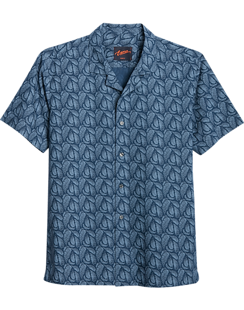 Crafted in batik fashion into a tropical fern pattern, this short-sleeved sport shirt by Egara offers a vacation-ready vibe. Woven from a cool cotton blend into trim, Slim Fit, it is both dress casual and on-trend.