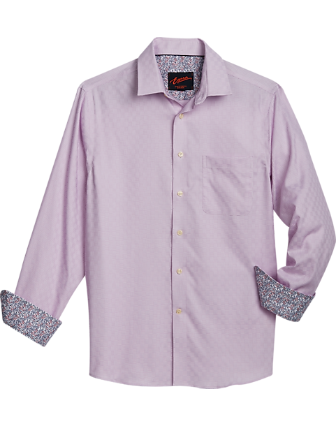 Woven into an intricate parquet pattern, this sport shirt looks sharp with its tonal grid design and Slim Fit. Fashioned with contrasting cuffs, it’s made with a cotton blend for breathable, stylish comfort.