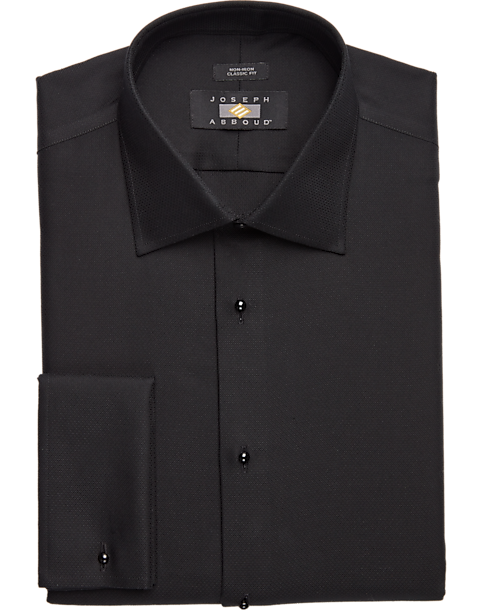 Richly woven from luxurious Egyptian cotton, this Joseph Abboud tuxedo formal shirt is impeccably tailored in a Classic Fit with a smooth French placket and French cuffs for the ultimate finishing touch. The non-iron treatment defies wrinkles for a crisp, flawless look. Classic Fit has more room in the chest and shoulders, with traditional armholes and fuller sleeves without being baggy. Recommended for fuller body types (large shoulders and upper arms, and a fuller waist).