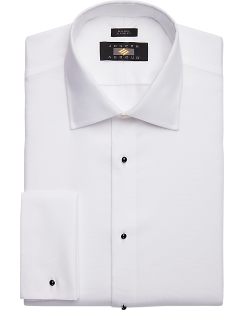 Richly woven from luxurious Egyptian cotton, this Joseph Abboud tuxedo formal shirt is impeccably tailored in a Classic Fit with a smooth French placket and French cuffs for the ultimate finishing touch. The non-iron treatment defies wrinkles for a crisp, flawless look. Classic Fit has more room in the chest and shoulders, with traditional armholes and fuller sleeves without being baggy. Recommended for fuller body types (large shoulders and upper arms, and a fuller waist).