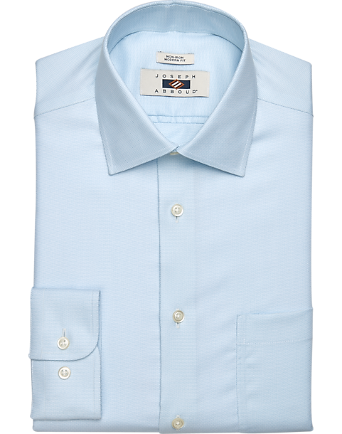 We love the easy-care versatility of this dress shirt from Joseph Abboud. Tailored from crisp cotton, it features a special treatment that keeps wrinkles to a minimum. Modern Fit is close-fitting without being constricting through the chest, body, and sleeve. Recommended for more rectangular body types (shoulders aligned with hips, with the waist slightly smaller).