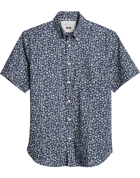 Woven into a fine fossil leaf pattern, this Joseph Abboud sport shirt has a flattering Modern Fit and short sleeves for warm weather days.