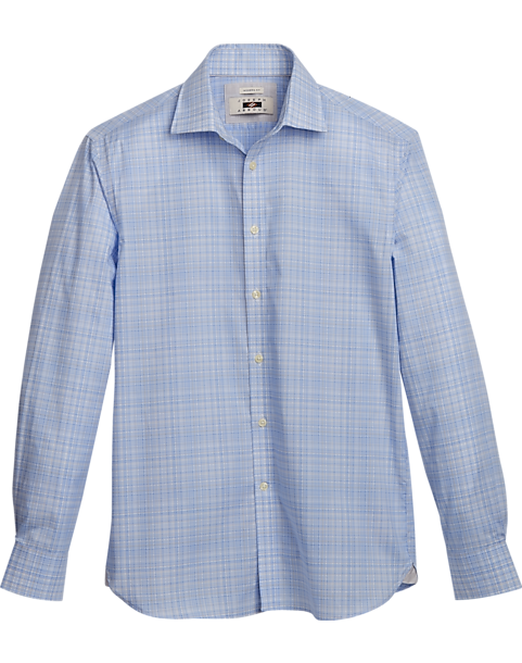 Put together a great look for yourself with this sport shirt from Joseph Abboud. The shirt features an appealing fine plaid pattern; the woven-cotton material is comfortable for all-day wear.