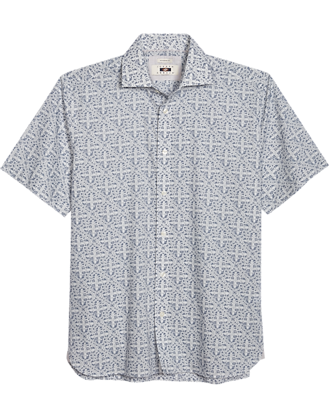 Keep your cool when the weather warms up with this breathable, cotton-blend sport shirt from Joseph Abboud. A graphic print brings eye-catching interest to the design.