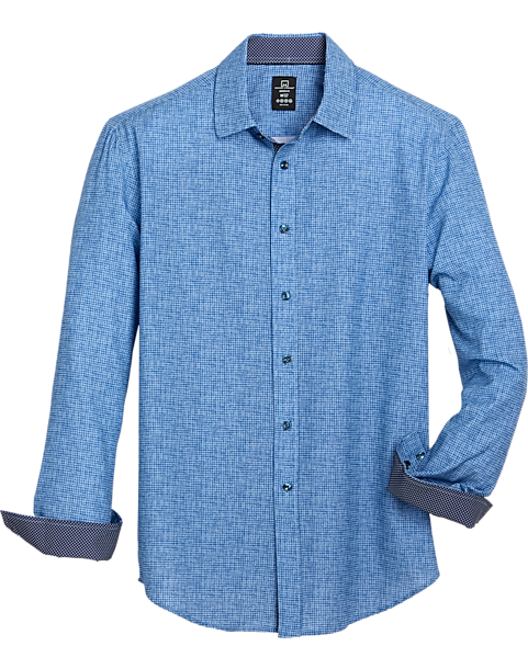 Bold and sporty in a navy gingham pattern, this standout sport shirt from Michael Strahan features a trim, Modern Fit, contrast lining in the cuffs, and a comfortable performance fabric with 4-way stretch.