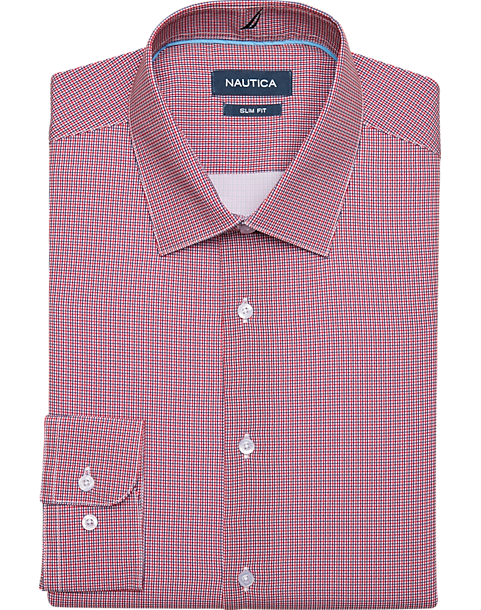 - Wrinkle resistant|Polyester blend|Spread collar|No pockets|Four-way stretch|Slim Fit|Nautica|