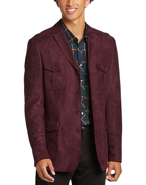 Instantly update your look with this soft ultrasuede military style jacket from Paisley & Gray. This unique offering features a button closure, four buttoned patch pockets and a trim Slim Fit.