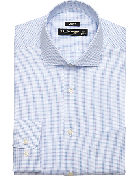Rendered in a fresh, inspired shade of lavender, this dress shirt from Pronto Uomo is a fitting choice for the spring and summer months ahead. Non-iron cotton keeps you looking neatly tailored all day. Modern Fit is close-fitting without being constricting through the chest, body, and sleeve. Recommended for more rectangular body types (shoulders aligned with hips, with the waist slightly smaller).