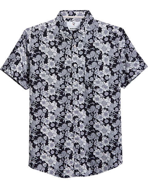 Woven with comfortable four-way stretch fabric, this sport shirt from the Report Collection keeps up with your every move while retaining its shape for the perfect fit. Fashioned with short sleeves and a bountiful floral pattern, it is both breathable and stylish.